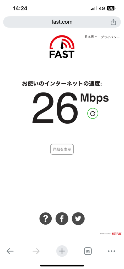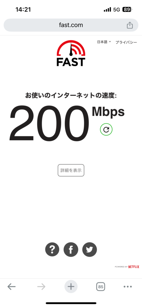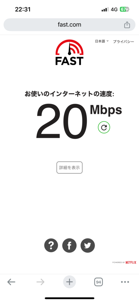 これだけの速度が出ていれば、正直、高い月額料金を払ってまで光回線を引く必要はないと感じました。
