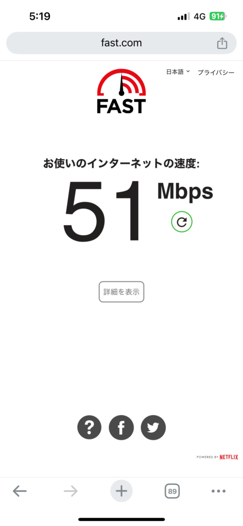 | 楽天モバイル(室内実測) | 20〜51Mbps | 圧倒的に安く、一人なら十分な速さ |